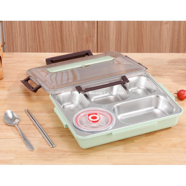 Japanese style lunch box with spoon and chosticks leakproof stainless steel PP bento box with inner soup bowl Images |